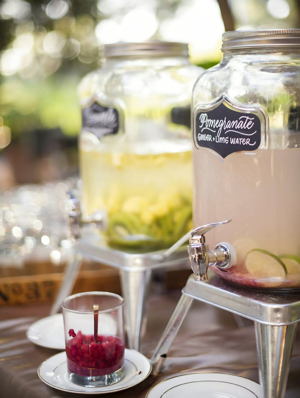 We prepare fresh, pre-made cocktail blends and design a clean, organized station where guests can serve themselves effortlessly.